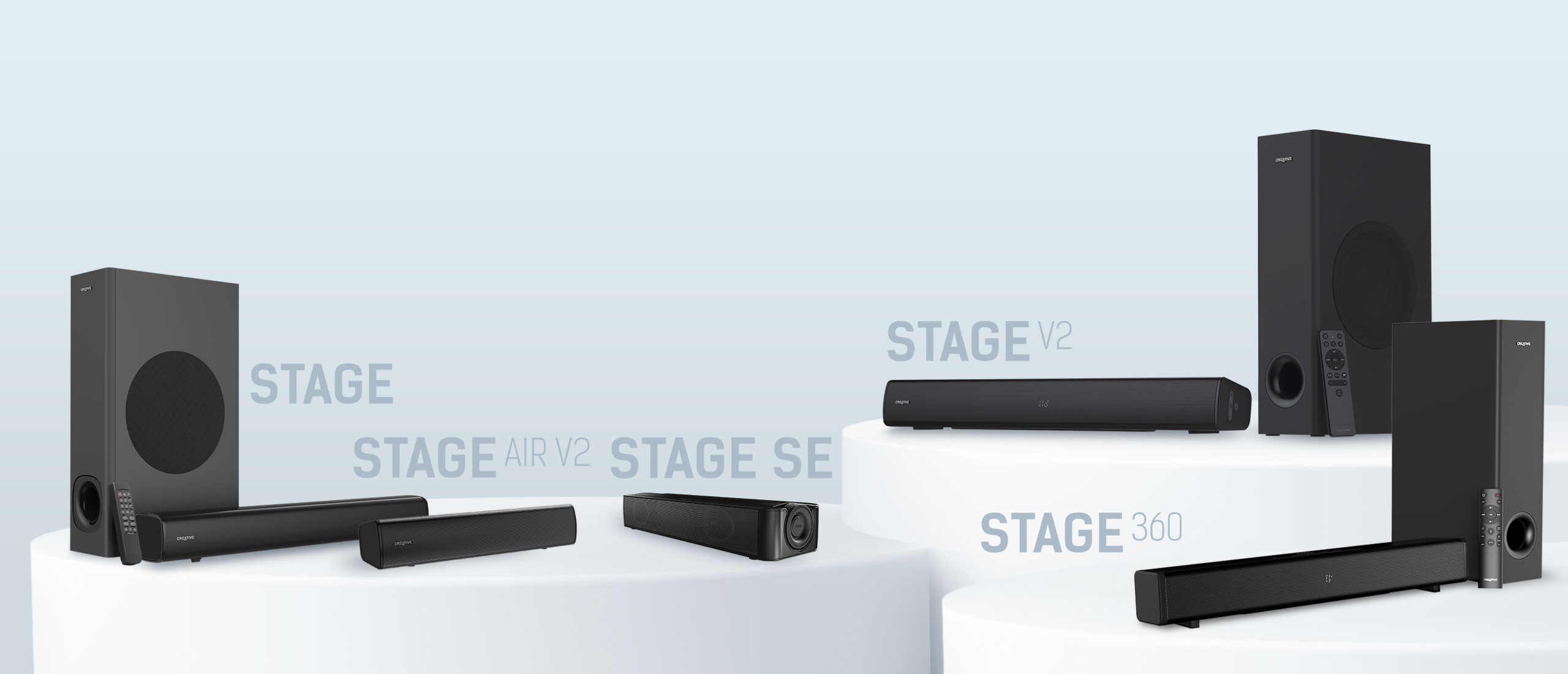 Bring your binge-watching and music enjoyment up a notch! The Stage series of soundbars is the perfect space-saving solution to upgrading the audio from your computer and TV's built-in speakers.